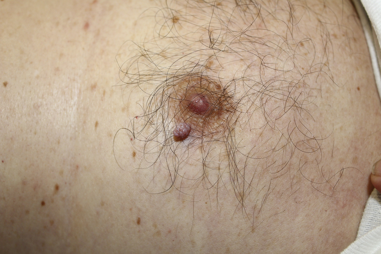 José, 67 ans, est très inquiet car une lésion est apparue à côté de son mamelon gauche.
