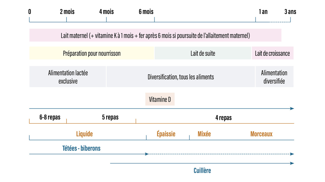 Après la diversification alimentaire, les nourrissons doivent consommer au moins 500 mL de lait de suite puis de lait de croissance par jour.
