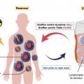 L’intérêt principal de l’allogreffe de CSH dans les hémopathies malignes est de remplacer le système immunitaire du patient par celui issu d’un donneur allogénique, qui produit un effet immunologique antitumoral appelé « effet GvL » (fig. 3 ). Même si le donneur allogénique est HLA-identique au receveur, il n’est pas son vrai jumeau monozygote, et son système immunitaire va donc reconnaître le receveur comme différent de lui.