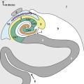 Les deux lames corticales enroulées de l’hippocampe, la corne d’Ammon et le gyrus dentatus, sont séparées du subiculum par le sillon de l’hippocampe dont la partie profonde forme le sillon hippocampique vestigial (