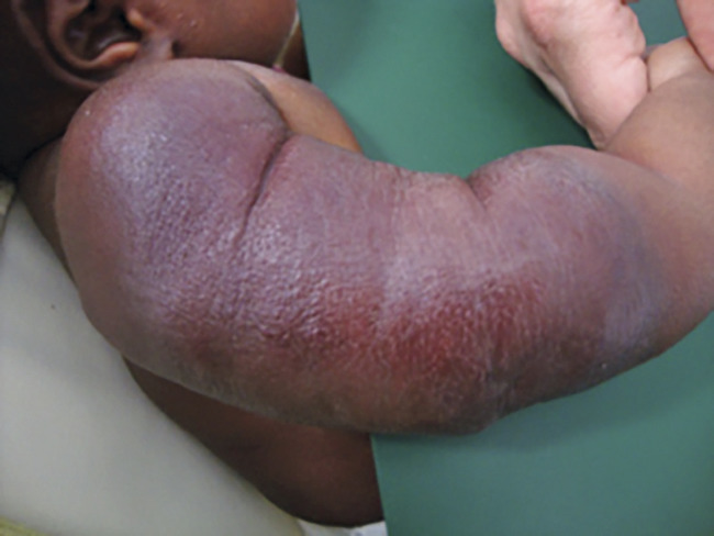 Superficiel, il a un aspect caractéristique : masse papuleuse plus ou moins ferme, bien limitée, rouge vif ou framboise, avec une surface volontiers mamelonnée. Localisé en sous-cutané, c’est une voussure bleutée, moins spécifique (