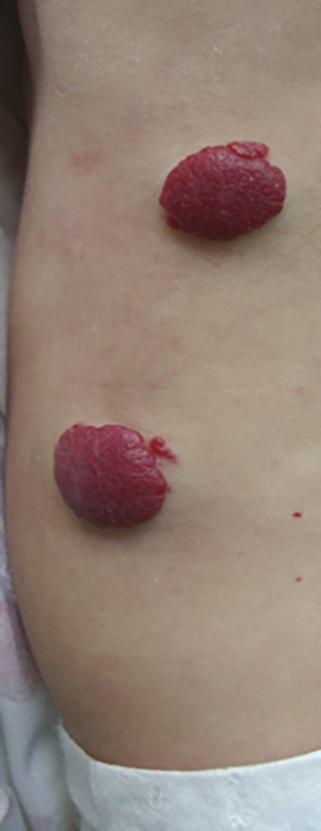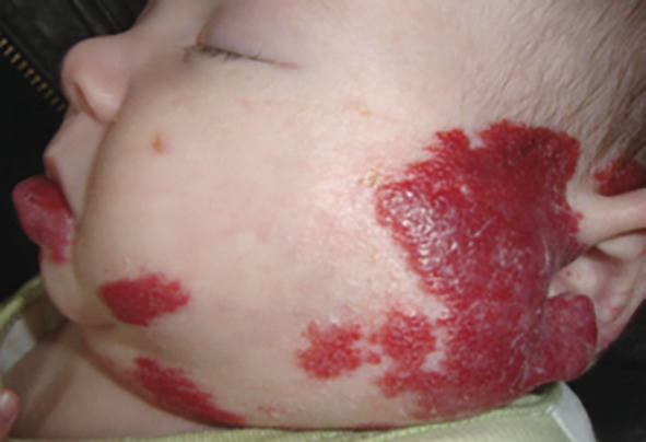 • situé dans une zone de frottement (siège, lèvres, dos…), hémangiome segmentaire.