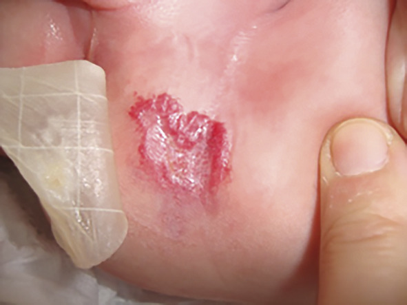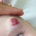 Hémangiome ulcéré (risques d’infection, douleurs, saignement) :