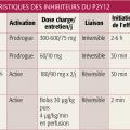 Les inhibiteurs des récepteurs P2Y12 à l’adénosine diphosphate (ADP), thiénopyridines, clopidogrel et prasugrel, sont des prodrogues, métabolisées par le foie en substance active. Elles se lient de façon compétitive et irréversible au récepteur du P2Y12, bloquant la voie de l’ADP (cf. infra).