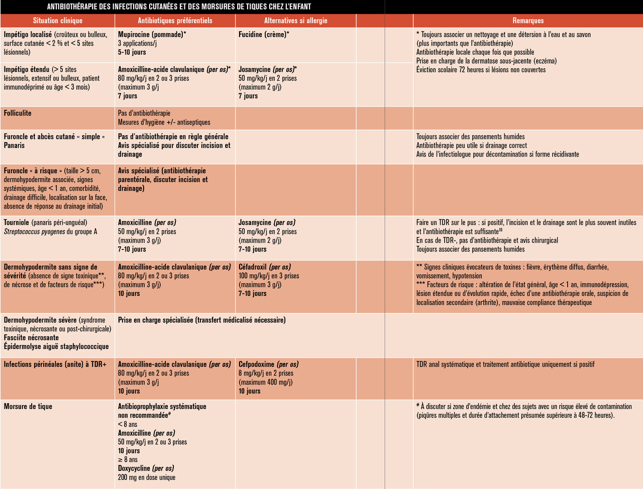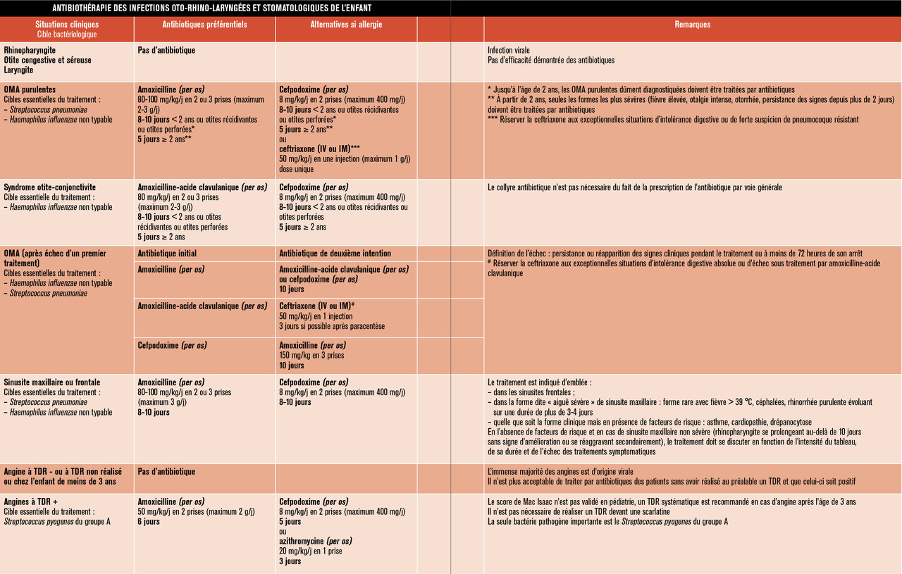 Cet article a pour but d’aider les cliniciens dans le choix et l’utilisation des antibiotiques en pédiatrie et se focalise en priorité sur les situations les plus fréquemment rencontrées en médecine générale. Il a été écrit à partir des recommandations officielles5, 6 et du guide d’antibio- thérapie du Groupe de pathologie infectieuse pédiatrique de la Société française de pédiatrie.7