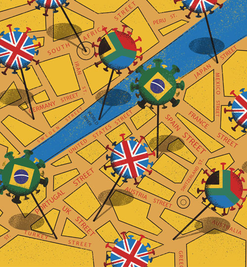 L’efficacité du vaccin AstraZeneca semble très faible voire nulle contre les formes légères de la Covid induite par le variant B.1.351, selon une étude randomisée menée chez des sujets jeunes (30 ans en moyenne). Les vaccins de Janssen et Novavax auraient un bon niveau d’efficacité contre les formes symptomatiques modérées ou sévères de Covid dues au variant sud-africain (52 % et 60 % respectivement) ; quant au vaccin Pfizer, son efficacité serait de 100 % contre les formes symptomatiques selon une petite étude rapportée dans un communiqué de presse du laboratoire (même si en Israël une analyse met en évidence une surreprésentation de cette souche parmi les échecs vaccinaux, c’est-à-dire les rares réinfections observées après vaccination).