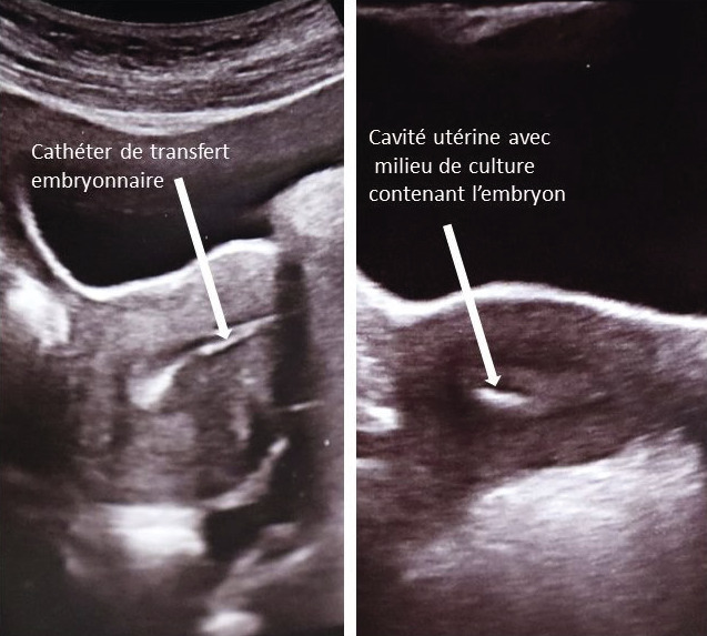 Un ou deux embryons sont transférés dans la cavité utérine à l’aide d’un cathéter de transfert adapté (