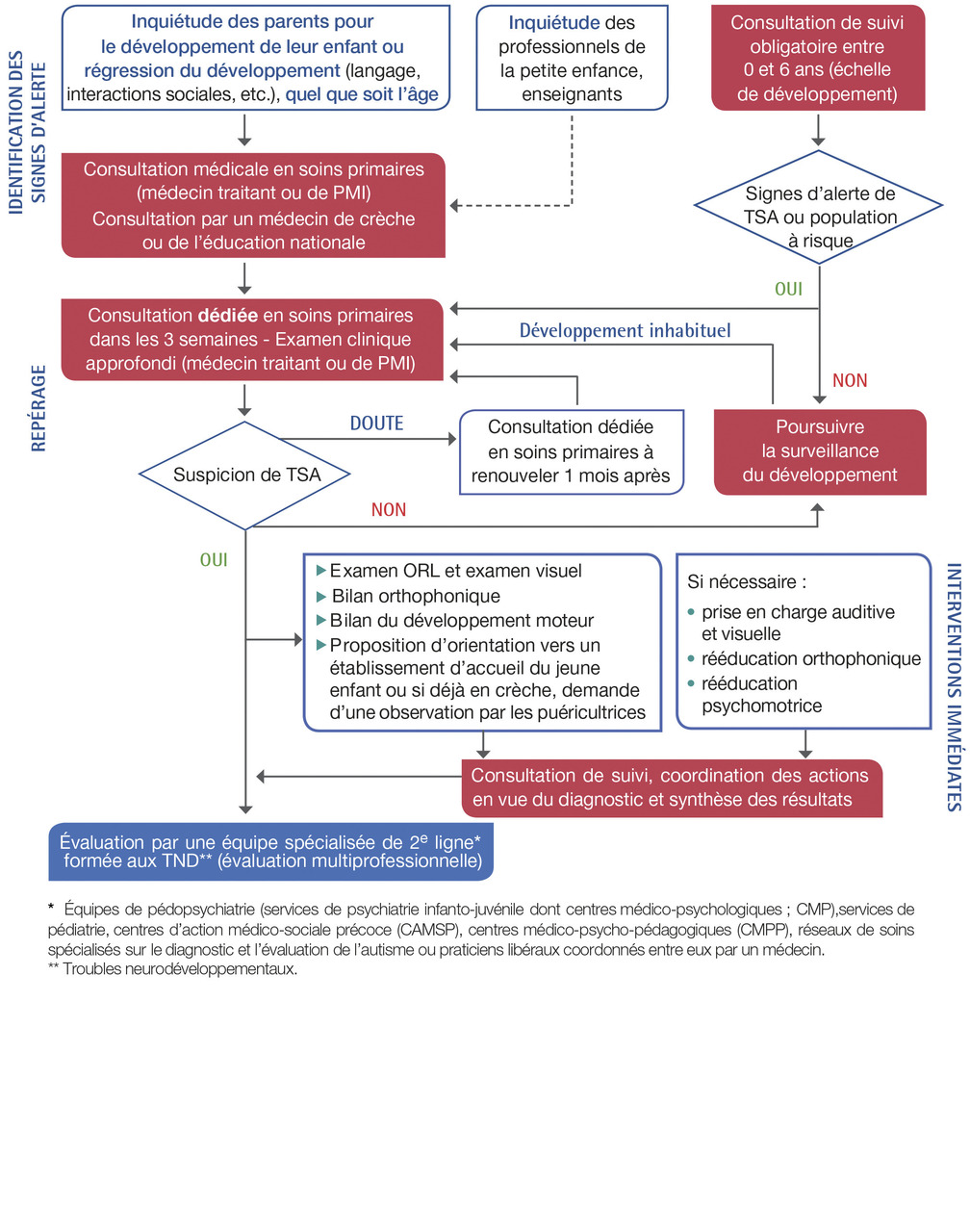 Repérage, dépistage et diagnostic précoce des TSA sont d’autant plus cruciaux que les programmes de prise en charge précoce spécifiques se sont montrés efficaces, dans des études contrôlées.3