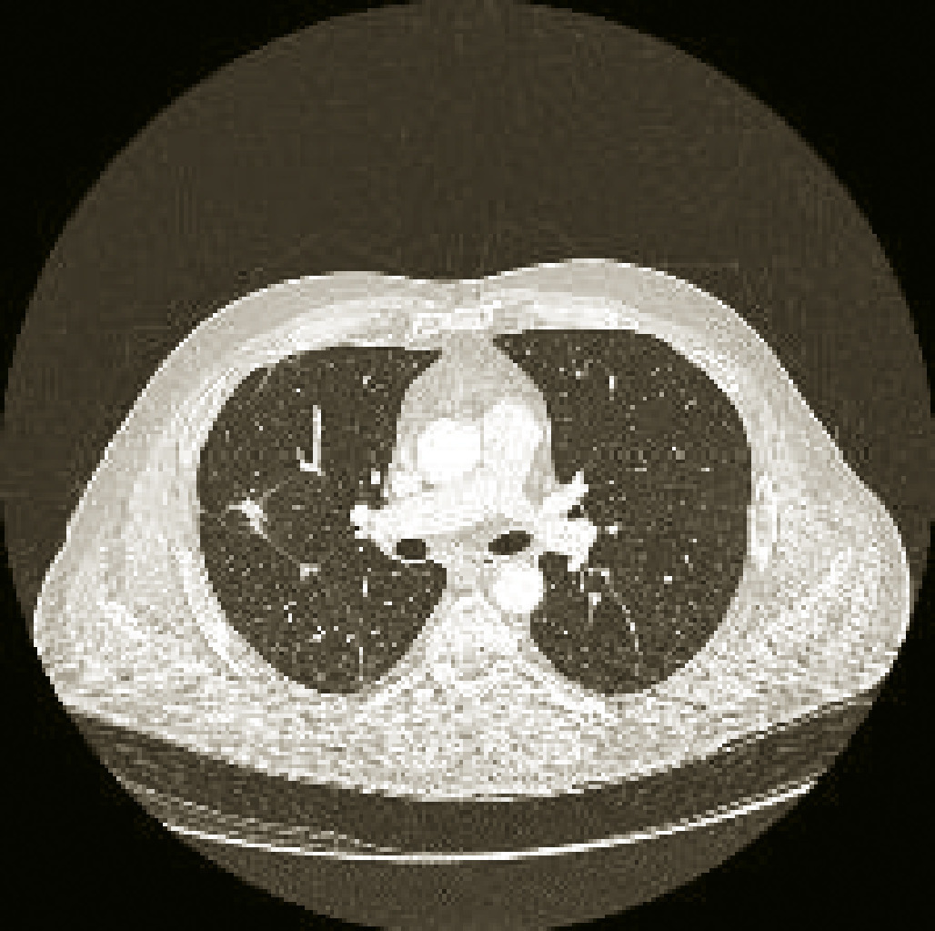 Voici ci-contre, afin d’illustrer l’importance à accorder à la recherche et la découverte de mutations d’intérêt thérapeutique, le cas d’un homme de 51 ans, non-fumeur, chez qui l’on découvre un adénocarcinome bronchique stade IV avec envahissement pleural et ganglionnaire majeur. Lafigure 1 correspond à son imagerie thoracique avant traitement, la figure 2 à son imagerie de réévaluation après traitement par un TKI de première génération ciblant sa mutation activatrice de l’EGFR.•