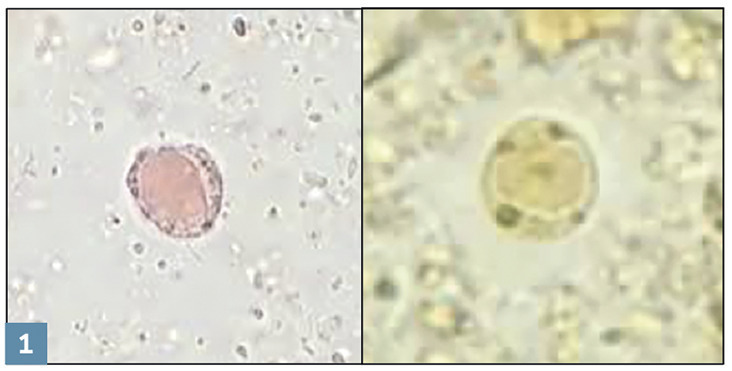 Quatre aspects sont décrits : le kyste, forme de transmission, résistant 1 mois dans l’environnement,3 la vacuole qui se divise et redonne des kystes, et les formes granulaires et amiboïdes plus rares et observées surtout en culture (tableau 2 ).4 Sa prévalence va de 0,5 % au Japon à 60 % en Malaisie et atteint 100 % au Sénégal chez des enfants.2 En France, elle varie selon les moyens diagnostiques, de 3 % avec l’examen microscopique des selles à 14 % en utilisant la PCR.