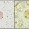 L’examen parasitologique des selles met en évidence les formes vacuolaires, visibles directement avec du sérum physiologique (et non de l’eau distillée qui lyse instantanément les vacuoles) ou colorées en rose par le merthiolate-iode-formol, (MIF) avec une périphérie plus foncée et des noyaux en rouge foncé (fig. 1 ), mais les techniques de concentration détruisent ces protozoaires. Les cultures sont possibles sur différents milieux.