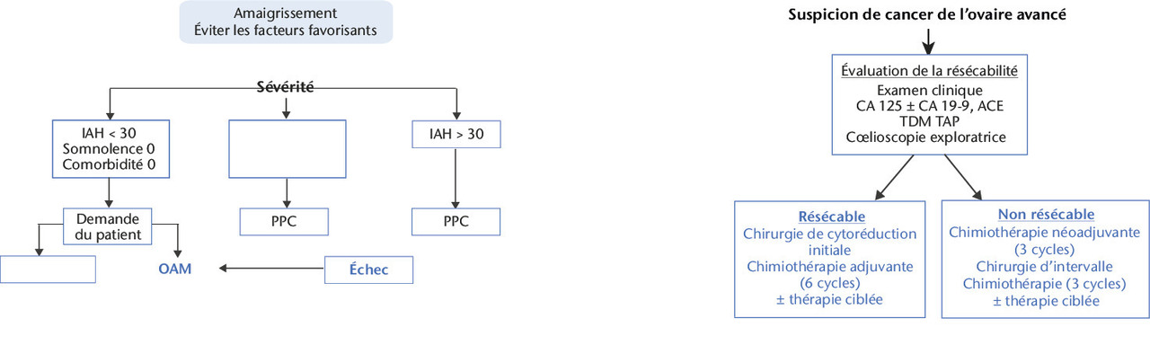 Le bilan comporte aussi un dosage du CA 125 ± CA 19-9 et ACE si suspicion de tumeur mucineuse ou si on évoque une origine digestive.4