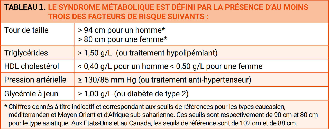 - suspicion de stéatose hépatique : en cas de syndrome métabolique (tableau 1) et/ou stéatose à l’échographie et/ou cytolyse ;
