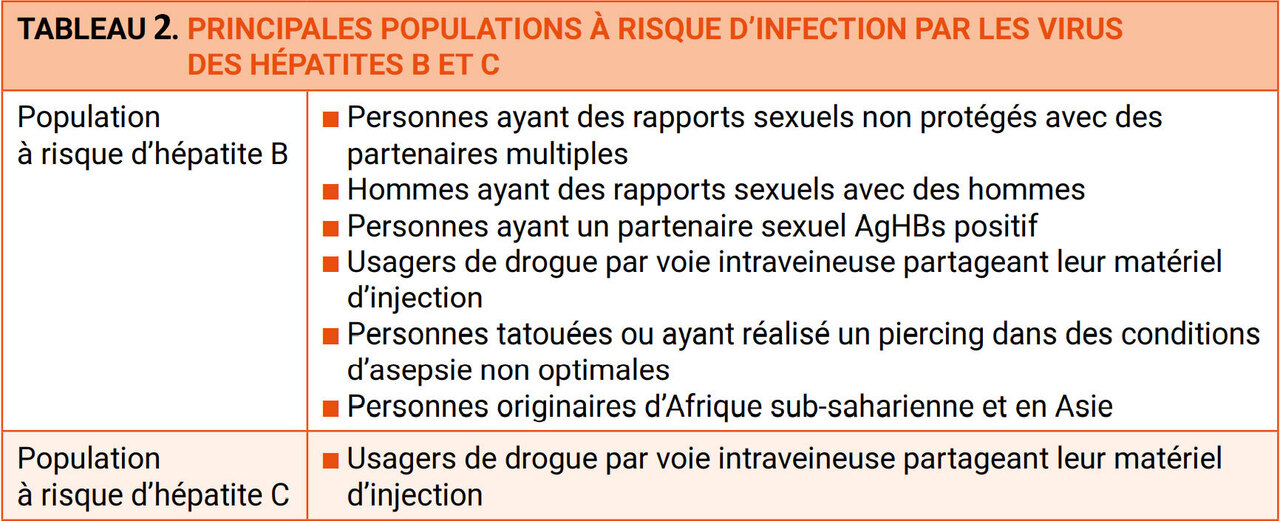 - infection chronique par les virus de l’hépatite B ou C (tableau 2).