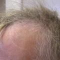 Les autres thérapies ciblées provoquent un ralentissement de la repousse des cheveux qui est frontale pour les inhibiteurs de l’EGFR (aspect de recul d’implantation des cheveux), et plus diffuse avec les anti-angiogéniques et les anti-BRAF.