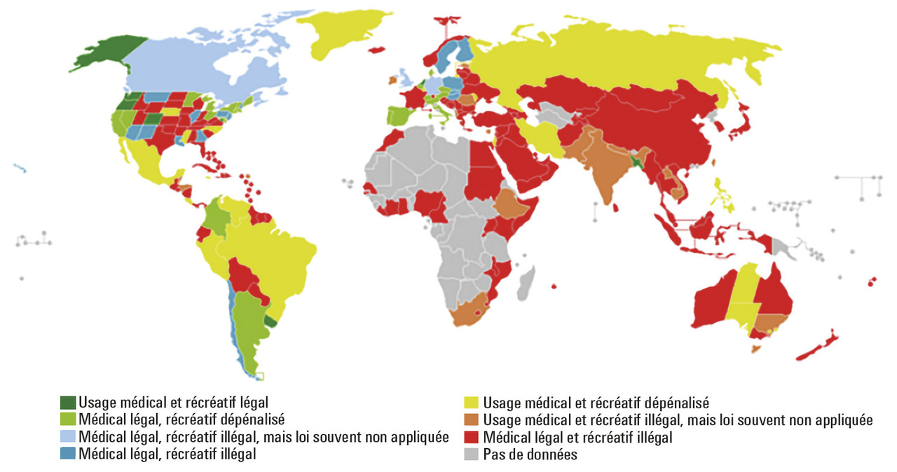 Le cannabis est la substance illicite la plus consommée dans le monde. Le composant principal responsable des effets psychotropes est le Δ9- tétrahydrocannabinol (THC), mais 120 phytocannabinoïdes naturels dont le cannabidiol (CBD) ont été identifiés. La connaissance de ses propriétés « médicales » date de plusieurs milliers d’années. Néanmoins, le statut juridique restrictif instauré en occident au début du XXe siècle n’a pas permis une évaluation clinique rigoureuse de ses effets thérapeutiques.