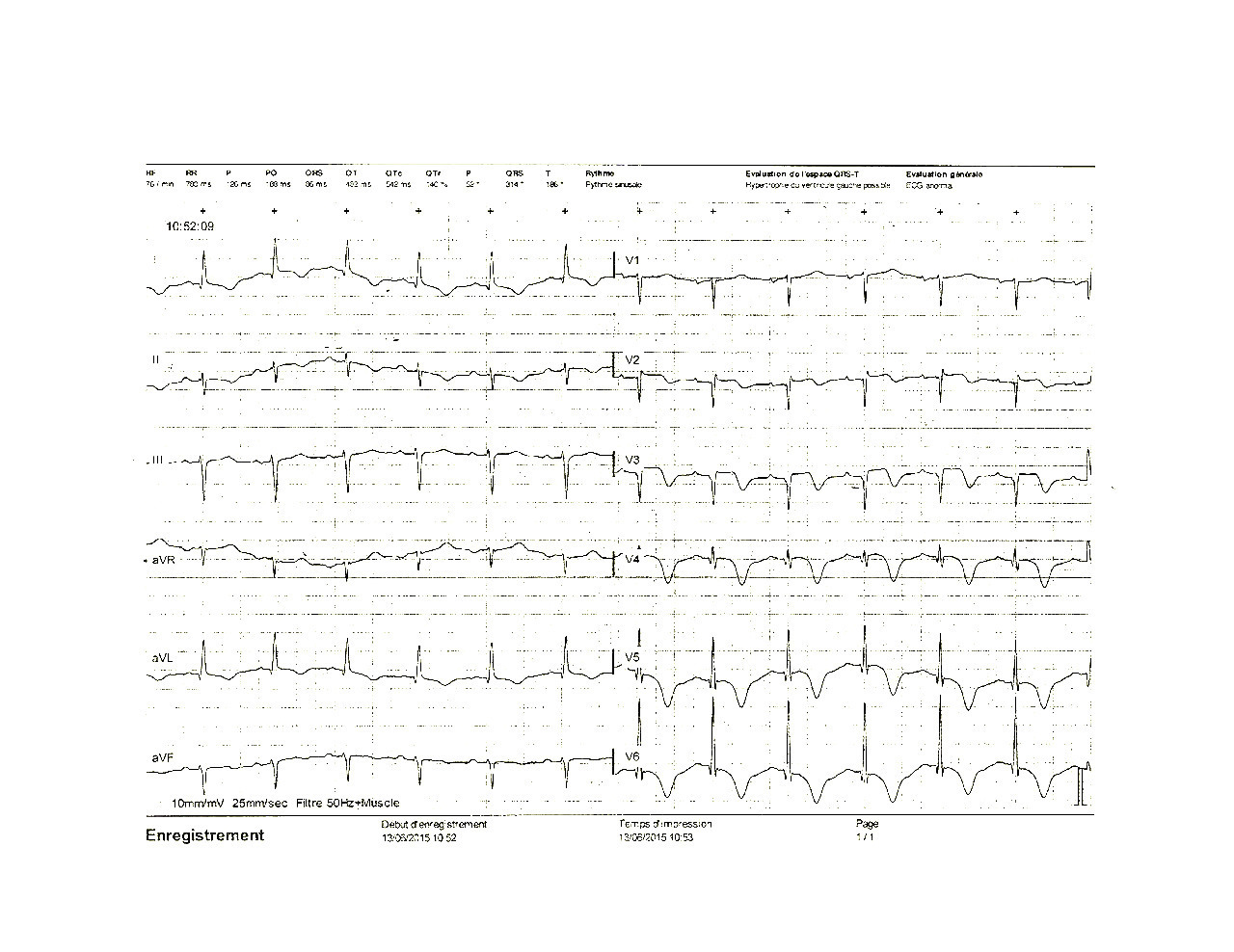 – présence de troubles de la cinétique ventricule gauche sans concordance vasculaire coronaire ;
