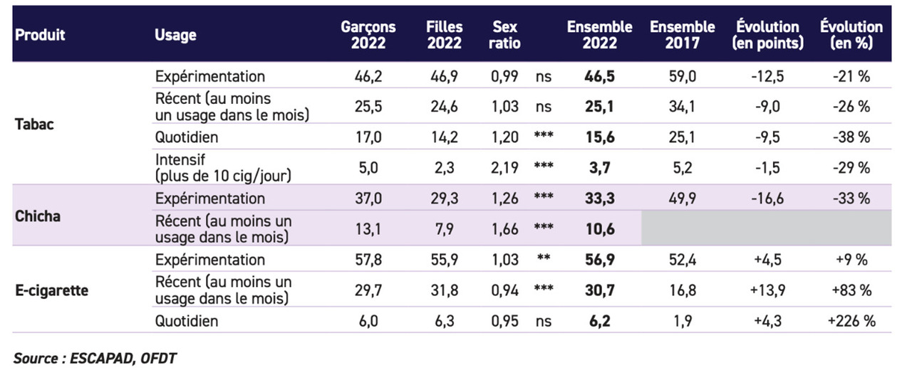2. Observatoire français des drogues et des tendances addictives. Tabagisme et arrêt du tabac en 2022. 24 mai 2023.