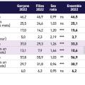 Selon l’OMS, son usage concernerait plus de 100 millions de personnes dans le monde, principalement en Afrique, en Asie et au Moyen-Orient. En France, d’après le dernier rapport de l’OFDT,2en 2022, un jeune sur trois (33,3 %) avait déjà eu recours à la chicha au moins une fois dans sa vie (fig. 1). L’usage récent reste majoritairement masculin : en 2022, 13,1 % des garçons ont fumé la chicha au cours du mois précédant l’enquête, contre 7,9 % des filles. Ces chiffres sont en nette baisse par rapport à 2017, où 49,9 % des jeunes avaient déjà expérimenté la chicha.