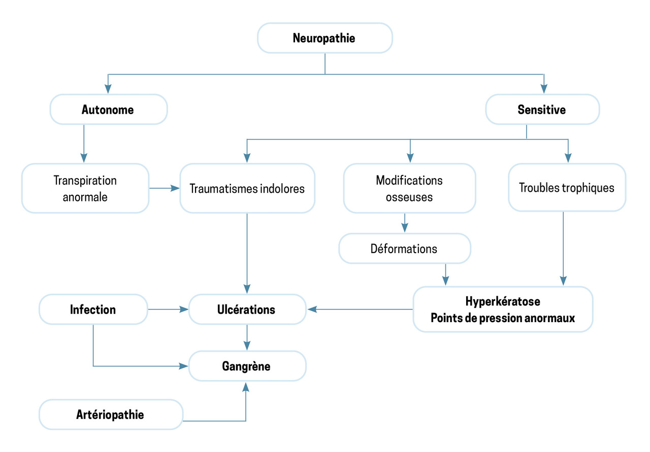 Deux composantes sont responsables de la vulnérabilité des patients diabétiques à un traumatisme, pouvant évoluer vers une plaie :