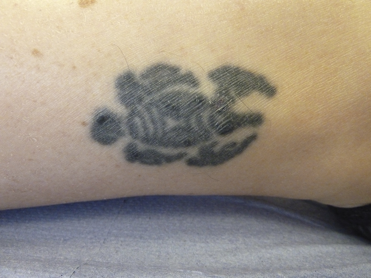 Le détatouage est aussi vieux que la pratique du tatouage elle-même. Les motivations sont diverses : résultat inesthétique ; regrets (souvent associés à des hésitations lors du tatouage) ; rupture avec le passé, raisons professionnelles ou sentimentales, pression sociale… Les techniques modernes de détatouage consistent en un retrait de la peau tatouée in toto ou seulement des pigments introduits. Elles ne comprennent actuellement que la chirurgie traditionnelle et le laser. Un geste chirurgical peut être proposé en cas de tatouage de petite taille sur des zones de faible tension au prix d’une cicatrice linéaire. Les tatouages de plus grande taille nécessitent un geste plus lourd (lambeaux, greffe, expansion cutanée).6 Les points de tatouage de radiothérapie peuvent être retirés très facilement lors d’une simple biopsie au bistouri circulaire.