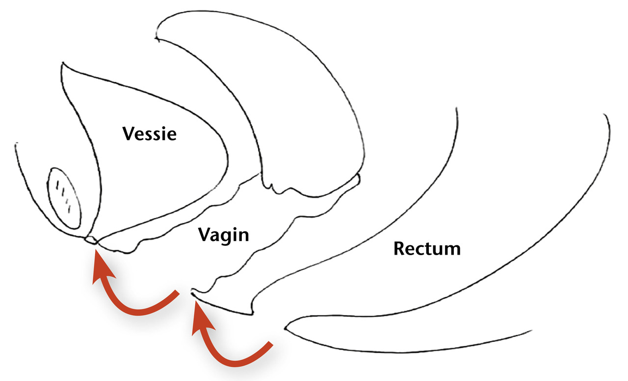 Venant de la zone péri-anale, les germes colonisent le vagin puis remontent le long de l’urètre et se multiplient dans la vessie en adhérant à sa muqueuse (fig. 1).