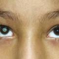 Le principal signe constituant une urgence, avec un examen ophtalmologique sans délai, est la présence d’une leucocorie, c’est-à-dire d’un reflet blanc dans l’aire pupillaire, constatée soit à l’occasion d’un examen médical, soit signalée par les parents, soit souvent présente sur une photographie avec flash (fig. 3 ). Ce signe peut révéler la présence d’un rétinoblastome qui, en plus d’altérer fortement le pronostic visuel, peut également engager le pronostic vital et nécessite une prise en charge urgente dans un centre d’oncologie pédiatrique adapté.