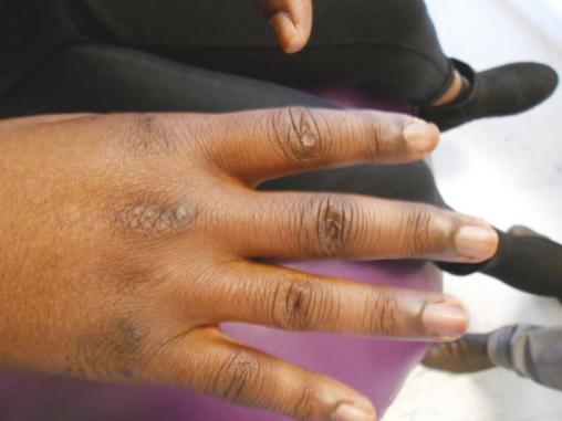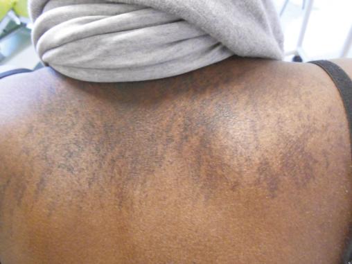 Les dermatomyosites regroupent un spectre large d’entités cliniques, chacune caractérisée par l’anticorps en cause. La dermatomyosite à anticorps anti-MDA5 se caractérise, en plus des atteintes cutanées des dermatomyosites habituelles (papules de Gottron, œdème liliacé des paupières et signe du châle), par la sévérité des symptômes : ulcères cutanés (principalement des extrémités), nécroses digitales, aspect de « mains de mécaniciens », arthrites périphériques. Mais l’atteinte musculaire (myalgies, déficit musculaire, syndrome myogène à l’EMG) qui prédomine en proximal aux membres supérieurs, peut être minime, voire absente. L’atteinte interstitielle pulmonaire, du fait de sa gravité, doit être recherchée systématiquement ; elle peut nécessiter une ventilation mécanique. Le traitement associe les corticoïdes et le cyclophosphamide lors des atteintes pulmonaires. Contrairement aux dermatomyosites à anticorps anti-TIF1 gamma, ces dermatomyosites sont plus rarement associées à un cancer.