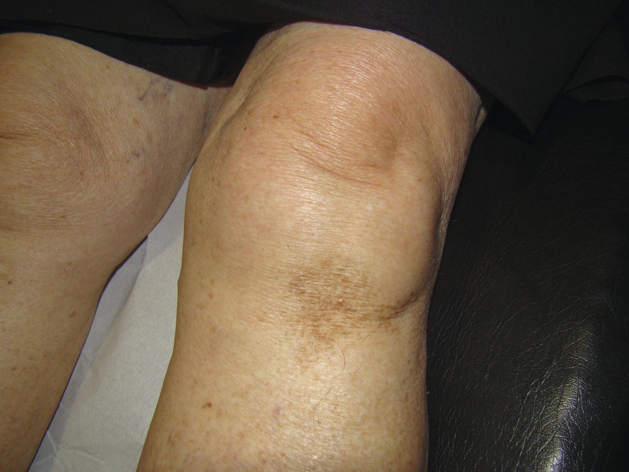 Maurice, 79 ans, consulte pour un placard pigmenté au-dessous du genou gauche, qui ne disparaît pas au nettoyage à l’eau savonneuse. Ses enfants ne cessent de lui répéter qu’il s’agit d’un problème d’hygiène…