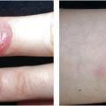 La douleur locale, immédiate et intense, est accompagnée d’une réaction inflammatoire allant d’un œdème à l’apparition de vésicules ou d’une véritable brûlure à type de lacérations cutanées entrecroisées, zébrures formant l’empreinte des tentacules (