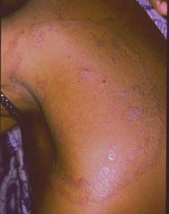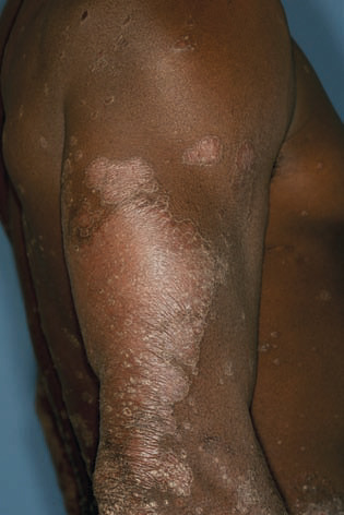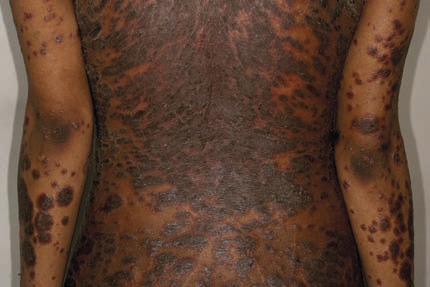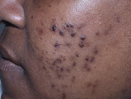 Le lichen plan, en particulier les formes profuses et hypertrophiques, semble plus fréquent mais cela n’a pas été prouvé ; il est à l’origine d’une hyperpigmentation post-inflammatoire particulièrement sévère et persistante. Le lichen nitidus est une dermatose chronique bénigne caractérisée par de minuscules papules monomorphes blanches et brillantes regroupées en plusieurs petits placards (histologie caractéristique à la biopsie) ; il est surtout décrit chez l’enfant à peau pigmentée (mais il est possible qu’il passe inaperçu sur peau claire). La Facial Afro-Caribbean Childhood Eruption (FACE) est une éruption de micropapules monomorphes de couleur chair situées dans les régions périorale et périnasale ; cette affection granulomateuse bénigne est proche de la dermite périorale et de la rosacée granulomateuse, qu’on observe sur tous types de peau. Un traitement oral prolongé par cyclines ou macrolides donne de bons résultats.