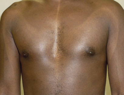Pour les mêmes raisons, les plaintes ne sont pas forcément fonction de la gravité de la dermatose : une acné sévère avec de gros nodules est relativement mieux supportée si associée à une dyschromie légère, tandis qu’une éruption acnéique minime peut occasionner des taches noires persistantes très mal vécues (fig. 3). Ainsi, l’acné est une source majeure de gêne esthétique chez les femmes adultes à peau foncée. Pour lutter contre les taches, ces dernières utilisent de multiples topiques éclaircissants, sans efficacité, alors qu’un traitement visant la composante inflammatoire serait plus utile. L’homogénéité du teint est une préoccupation majeure de nombreuses personnes. L’intensité de la pigmentation varie selon les régions du visage et les conditions d’ensoleillement ; certaines hétérogénéités sont physiologiques (visage plus foncé que le corps, région centro-faciale plus claire…) ou d’origine inconnue (hyperpigmentation périorbitaire…). Les « lignes de démarcation pigmentaire » (dites de Voigt ou de Futcher) sont parfois spectaculaires, mais suscitent rarement des plaintes (fig. 4A, 4B).