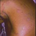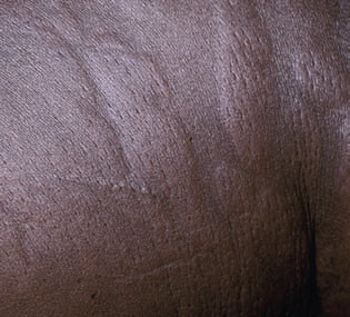 La sécheresse cutanée excessive (xérose) est un motif fréquent de consultation en dermatologie des Africains immigrés en France et des Antillais. On incrimine souvent, sans preuve, le climat ou l’eau riche en calcaire. Une autre explication serait que la desquamation physiologique, qui forme une fine poussière grisâtre, serait naturellement plus visible, par contraste, sur une peau plus foncée (ashy skin). D’où les habitudes de toilette abrasive (filets, gants de crin) suivies de l’application d’émollients, pour obtenir une peau plus éclatante. En réalité, ces pratiques semblent aggraver la xérose, surtout chez l’atopique. Les démangeaisons diffuses imposent une investigation complète et une anamnèse rigoureuse, éventuellement suivies d’examens complémentaires à la recherche des principales causes générales de prurit. Il n’est pas rare de ne trouver qu’une xérose cutanée banale, sans dermatite atopique avérée. Certains auteurs se sont même interrogés sur de possibles différences de perception de la sensation prurigineuse selon l’origine ethnique.