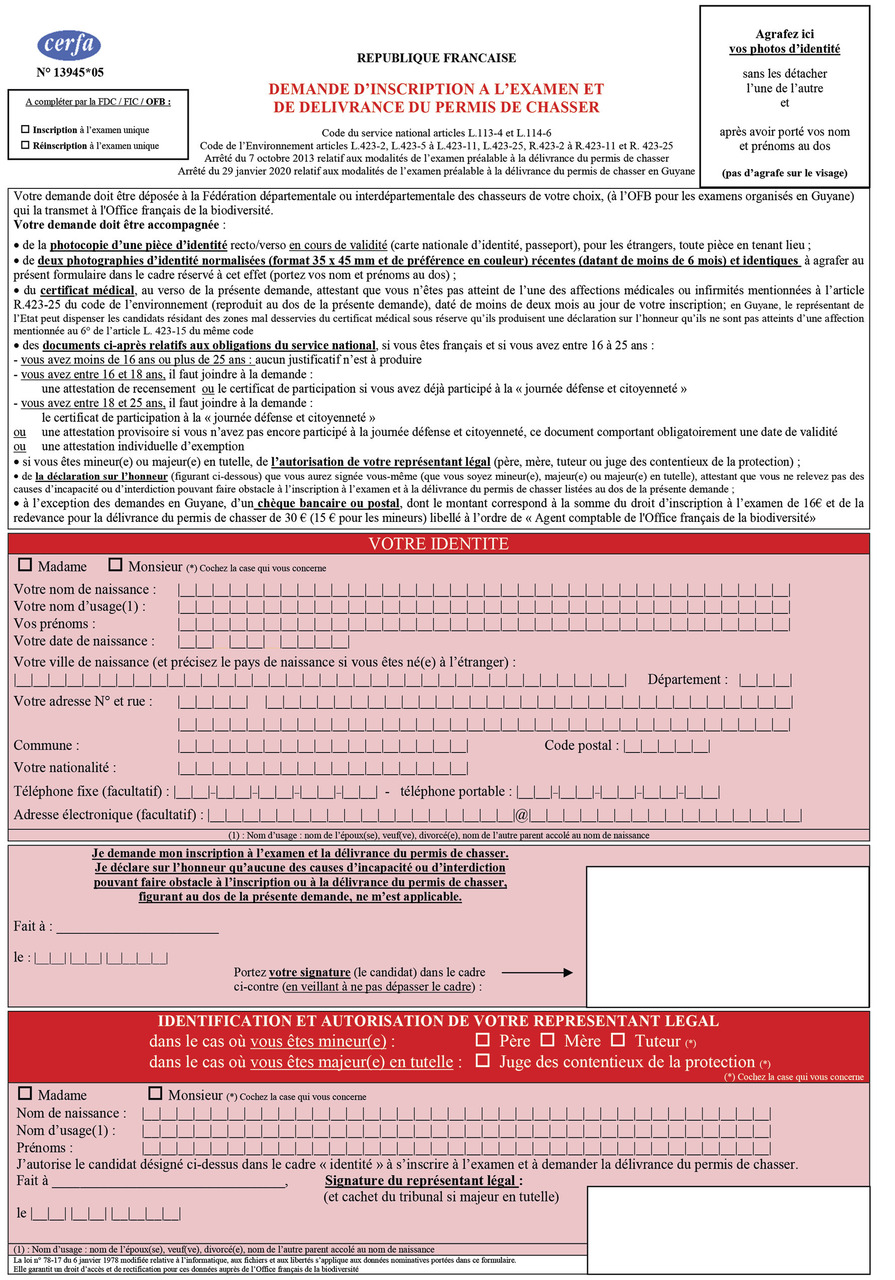 Le participant n’est pas autorisé à chasser s’il est sous tutelle, sauf autorisation du juge des contentieux de la protection. Il n’est pas non plus autorisé s’il est âgé de moins de 16 ans. L’inscrit ne doit pas être privé du droit de conserver ou d’obtenir un permis de chasser, ni être inscrit au Fichier national automatisé nominatif des personnes interdites d’acquisition et de détention d’armes (FiNIADA). Le processus de renouvellement est quant à lui annuel (