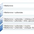 Contrairement aux recommandations de la HAS (fig. 2 ) qui préconisent de combiner metformine + sulfamide en 2e intention, la Société francophone du diabète (2019) préfère l’association à un inhibiteur de DPP-4. L’association metformine + GLP-1 RA peut être envisagée chez le patient obèse (IMC ≥ 30 kg/m2), ou en prévention cardiovasculaire secondaire (liraglutide).