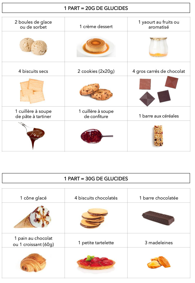 En pratique, leur consommation s’intègre à la ration glucidique journalière : ils sont donc consommés en remplacement d’un autre aliment glucidique. Même si le fruit reste à privilégier en fin de repas, il peut donc occasionnellement être remplacé par 2 boules de sorbet, un entremets, un laitage sucré... (v. équivalences glucidiques, figures 1 à 3).