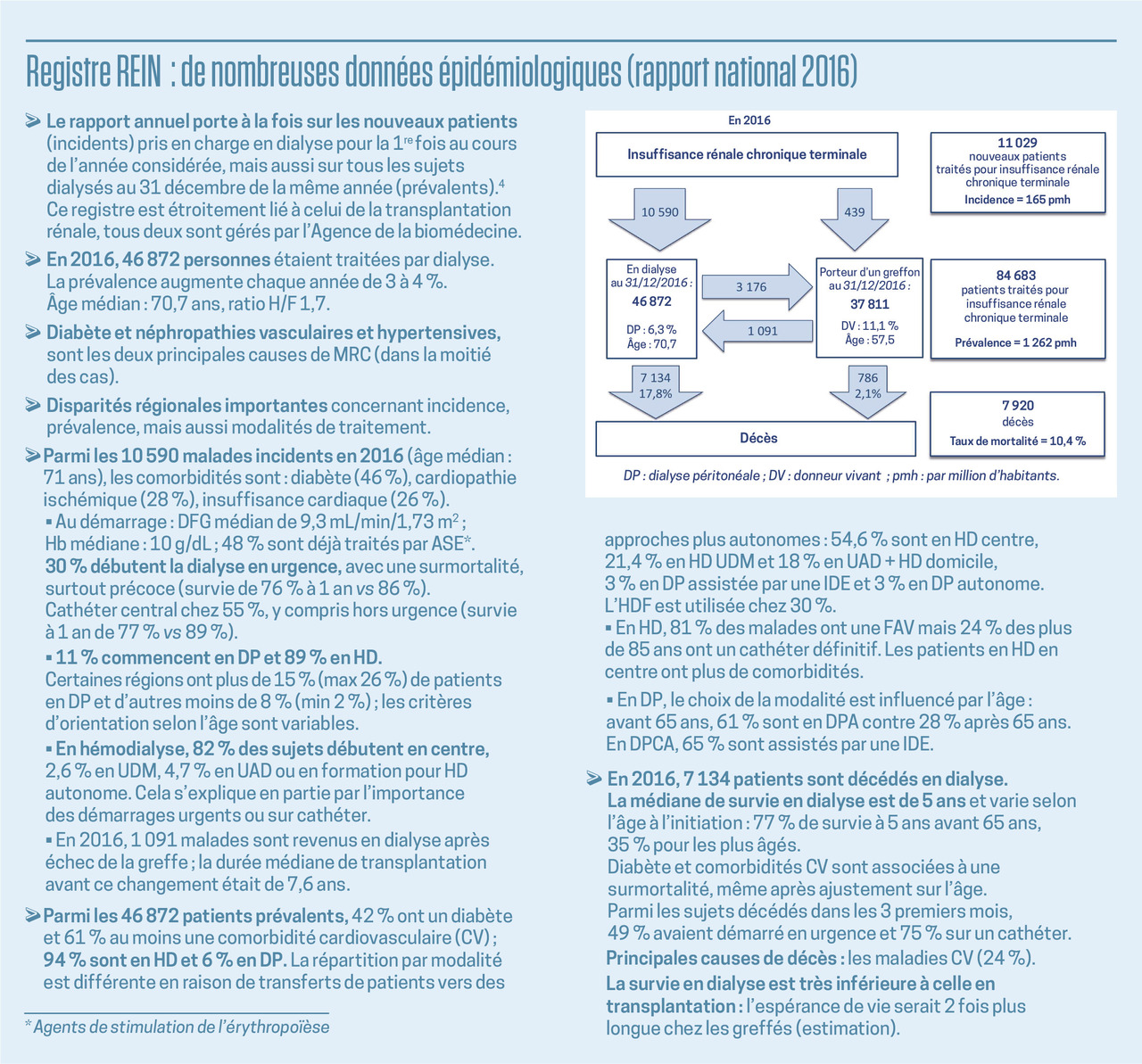 4. Agence de la biomédecine. Rapport annuel 2016. Réseau épidémiologie et information en néphrologie – REIN. Registre français des traitements de suppléance de l’insuffisance rénale chronique. 2018.