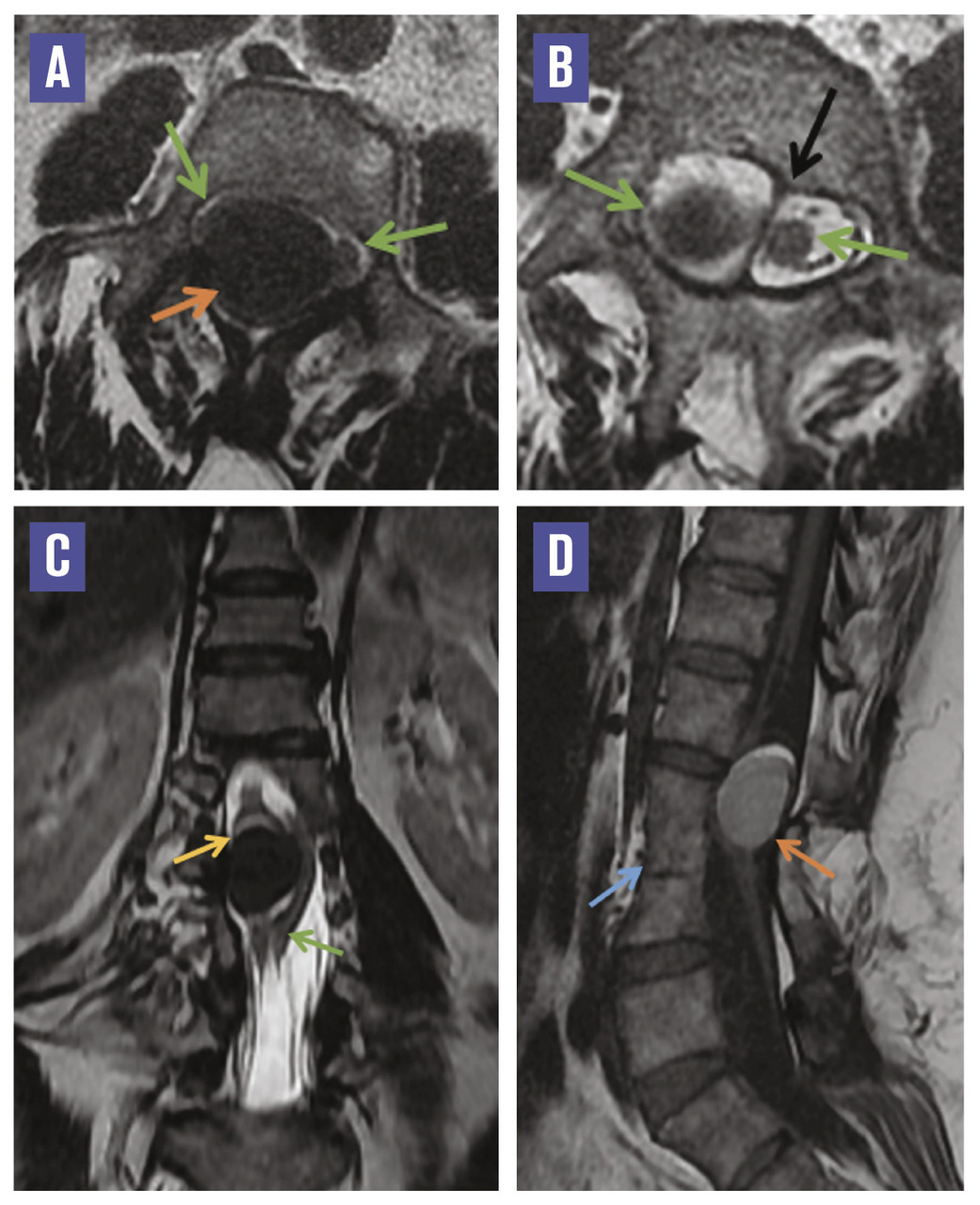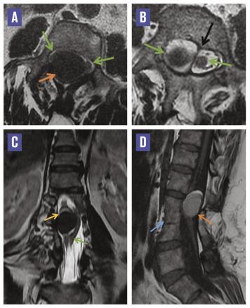 Cette femme de 44 ans, sans antécédent pathologique notable, souffrait depuis trois ans de lombosciatalgies intermittentes, sans déficit sensitivomoteur, avec incontinence urinaire et fécale occasionnelle.