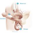 Les deux types d’implant pénien actuellement disponibles comprennent les dispositifs gonflables (deux et trois pièces) et les dispositifs semi-rigides (malléables). Les implants péniens gonflables trois pièces (hydrauliques) sont largement plus utilisés en raison des érections plus « naturelles » obtenues (fig. 3 et 4 ). Les prothèses semi-rigides donnent un pénis ferme, qui peut être placé manuellement selon l’utilisation et offrent l’avantage d’une technique d’implantation simple, ainsi qu’une utilisation facile pour le patient. En revanche, ils peuvent présenter l’inconvénient d’une érection persistante non naturelle et d’une moindre discrétion. Ils peuvent également être une option pour les hommes dont la dextérité manuelle est limitée, rendant difficile la gestion de la pompe scrotale. Les deux principales complications sont la dysfonction mécanique (inférieure à 5 % après 5 ans) et l’infection (2 à 3 % sur les premières implantations chez les patients à faible risque au sein de centres à haut volume).29