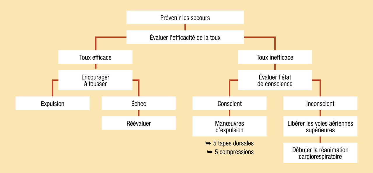 Les mesures d’urgence en cas d’asphyxie après un syndrome de pénétration sont résumées dans la figure.