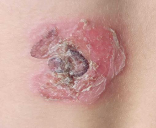 Habituellement, les lésions siègent au niveau des membres inférieurs et surviennent chez les patients fragiles (diabétiques, dénutris, immunodéprimés).