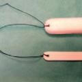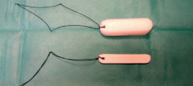 Si persistance du saignement après compression bidigitale, introduire un tampon hémostatique résorbable comme Coalgan dans le vestibule nasal, ou une éponge expansive type Merocel (fig.) qui comprime les deux tiers antérieurs des cavités nasales : mise en place douloureuse mais simple, ne nécessitant pas d’instrument particulier. On pousse le tampon sur plusieurs centimètres dans la fosse nasale parallèlement au palais. Puis on le fait gonfler avec du sérum physiologique.