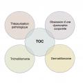 Si l’anxiété est toujours un symptôme clairement rapporté par les patients atteints de TOC, le DSM-5 a créé une nouvelle catégorie rassemblant les TOC avec des troubles qui lui sont « apparentés » (fig. 2 ).3