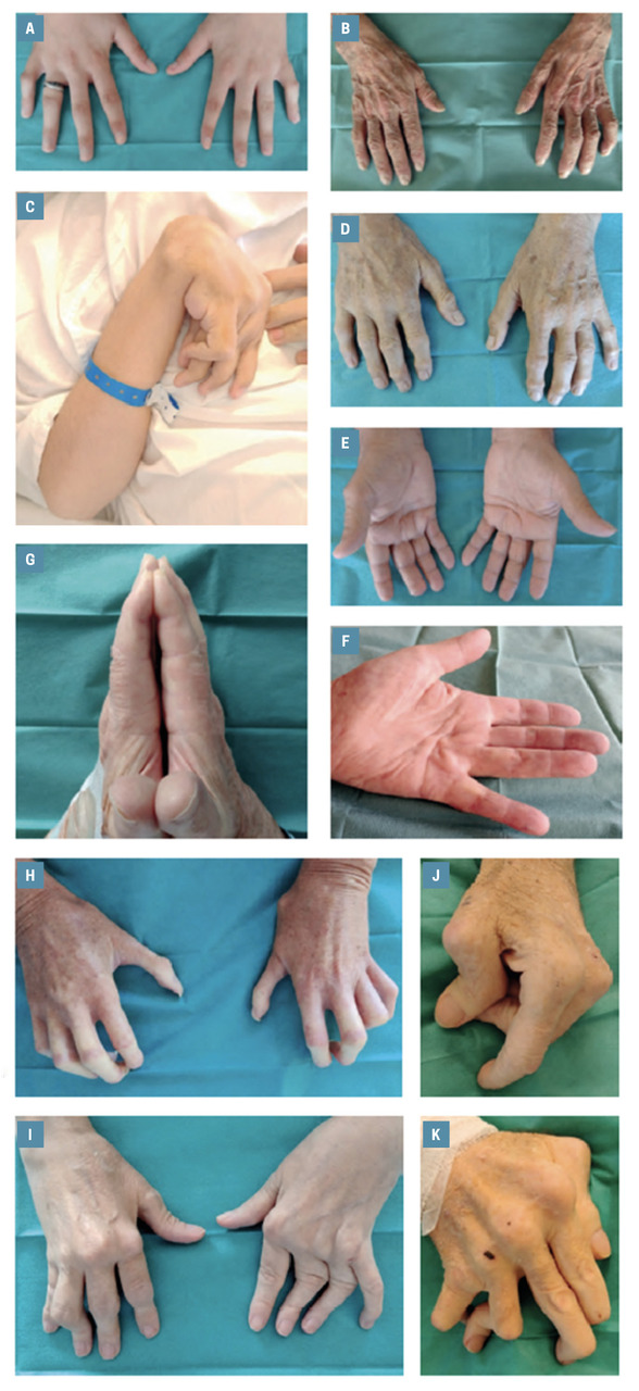 En général, on ne prête attention aux mains des patients que lorsqu’ils s’en plaignent, ou que des signes évidents (et peut-être déjà évolués) y sont décelés. Il peut aussi arriver que l’on remarque un signe, un détail, en serrant la main d’un patient ou en y jetant un regard. Pour ne pas méconnaître une pathologie sous-jacente, la sémiologie de la main et les pathologies fréquentes ou typiques qui y sont liées méritent d’être abordées.