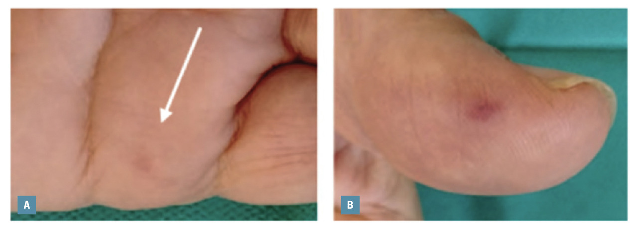 Le purpura palmaire peut être un indice précieux dans le cadre d’une suspicion d’endocardite infectieuse. Les classiques faux panaris d’Osler et le signe de Janeway sont liés à des micro-emboles septiques (