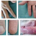 Zoom sur des lésions localisées aux faces dorsale et palmaire