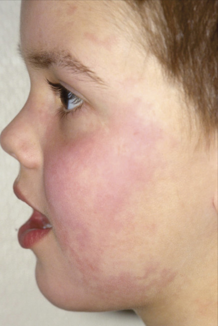 L’incubation dure quatorze jours en moyenne. L’exanthème débute au visage, avec un aspect souffleté des joues caractéristique (fig. 3) suivi, vingt-quatre heures plus tard, d’une éruption du tronc à bords émiettés (« exanthème figuré en guirlande »), parfois associé à un érythème ou à un purpura en gants et chaussettes.