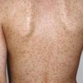 • roséoliforme (macules rosées séparées les unes des autres par des intervalles de peau saine) ;