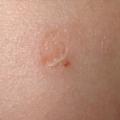 Lors de la primo-infection survient une éruption prédominant au niveau du tronc avec une atteinte palmo-plantaire possible et parfois associée à des ulcérations douloureuses buccales et génitales.