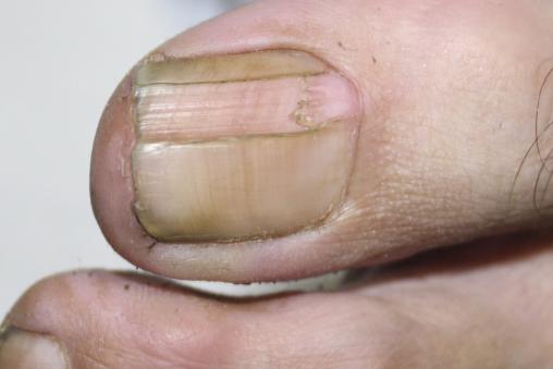 Marc, 35 ans, consulte pour une lésion kératosique apparue il y a plus de 3 ans au niveau de la matrice du premier orteil du pied gauche, qui modifie l’architecture de l’ongle à ce niveau.